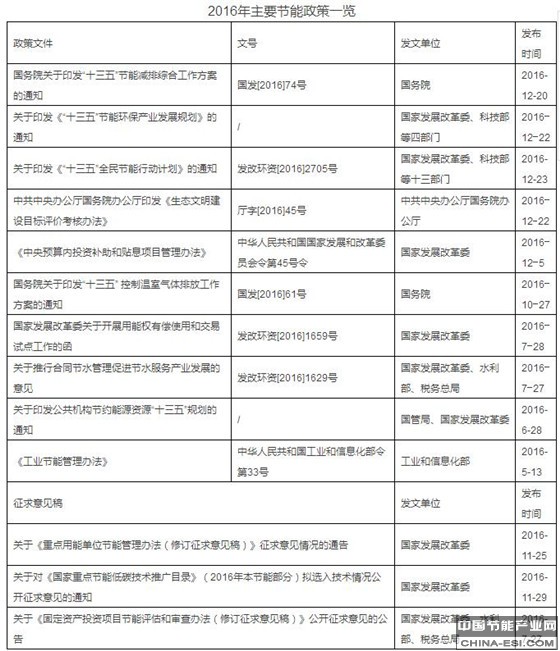 2016年出台的节能政策数量并不算多,但是重磅政策不少,可以说确定了整个“十三五”期间的节能方向和目标。
