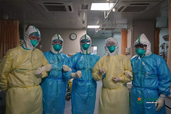 1月28日,武昌医院重症监护室,军地医生齐心协力,共同对抗“疫魔”。(图片来源:中国军网)