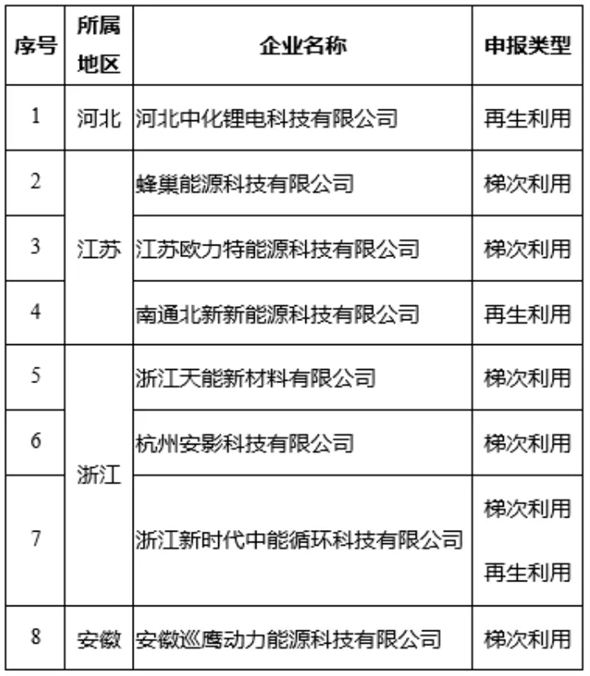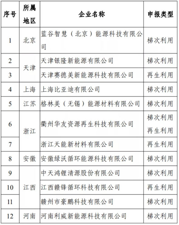 第一批《新能源汽车废旧动力蓄电池综合利用行业规范条件》企业名单