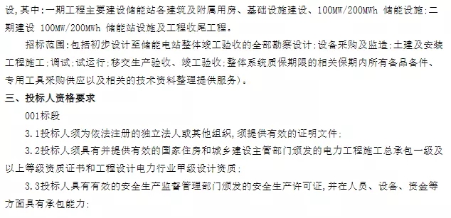 招标公告中要求投标人近5年内至少具有1项300MW及以上火力发电项目或火力发电厂储能项目的勘察设计/施工/EPC业绩,且近5年内至少具有1项50MW及以上风电/光伏发电项目或风电/光伏配套储能项目或其它含储能项目(综合能源、多能互补、电网侧储能等)的勘察设计/施工/EPC。