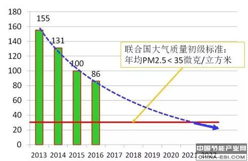 例如,河北省的邢台市,大气中PM2.5的年均浓度,2013年是155微克/立方米,是当年全中国空气质量最差的城市,2016年是86微克/立方米;三年时间里下降了45%。按这个速率一直降下去,预计到2022年,可以降到35微克/立方米(世界卫生组织的初级阶段标准)以下。既然曾经大气质量最差的邢台市的霾都能够给治了,中国就没有哪个城市的霾治不了!