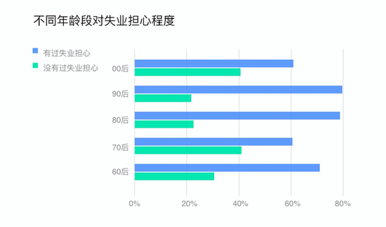 在职业发展方面,83%的80后曾遇到过职业危机或职业瓶颈,90后的比例为82%。相对于其他年龄群体,90后最担心失业,有79%的90后担心失业。95%的用户认为学习新职业、提升自身发展潜力是走出职业危机的关键因素。