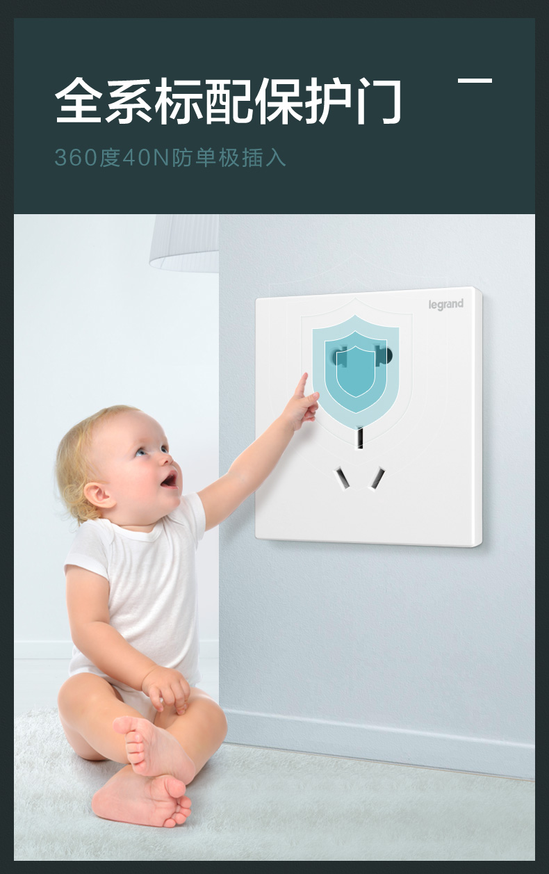 插座保护门做得可靠严密,不用担心小朋友用细针触碰带电部位。