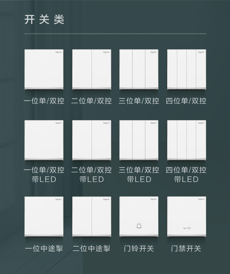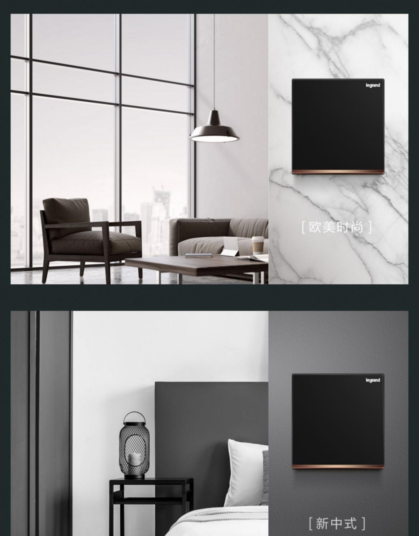 罗格朗逸景系列丰富完整的功能配套以及适配各种装修风格的面板定制,能满足不同类型用户需求。