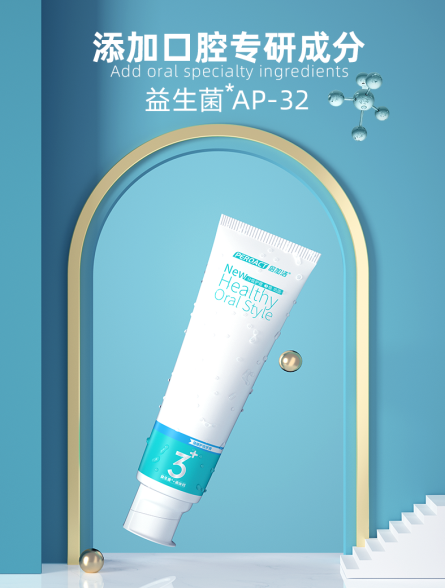 倍加洁益生菌系列牙膏选用益生菌AP-32,直击根源问题,开启口腔护理3.0时代! 益生菌AP-32具有平衡口腔菌群的作用,消除口腔异味;益生菌及其衍生物可以凝集有害菌,带走食物残渣和大部分细菌,还你安心、持久的清新口气,从此告别社交敏感,让你更加自信有魅力,早晚三分钟,解锁口腔清新奥秘!