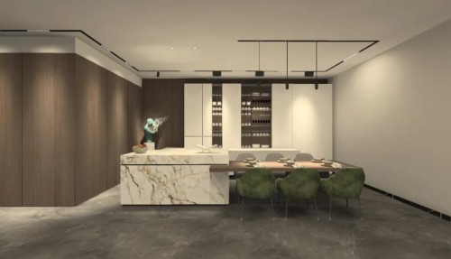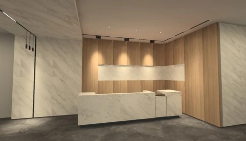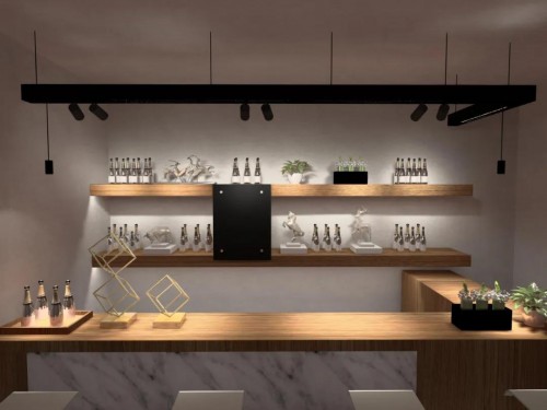 在这样的商业空间,我们可以采用磁吸轨道+轨道射灯模块+吊线射灯模块+泛光灯模块,射灯模块精准控光,重点照射商品,避免光线直接照射到顾客身上产生不适眩光;泛光灯模块补充空间的照明亮度,两者相互结合,营造别具一格的光影氛围。