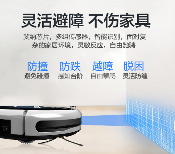 此外,斐纳TOMEFON-TF-G808扫地机器人还具有应对危险的快速反应能力,在全身具备着多组传感器的智能识别,让清扫时的机器人即使在面对复杂的家居环境也有灵活避障的快速反应,既不损坏自己,也能与家具和谐相处。