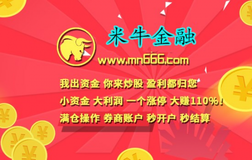 米牛金融是国内领先的互联网股票配资平台,是一家专注于股票投资、金融服务、及资产管理的专业机构,平台以帮助用户安全、高效和快速财富增值为主线,客户可以通过本平台获得10倍杠杆,可配1000万操盘资金,全程网络操作,高效便捷。米牛金融专业股票配资1-10倍杠杆,1000元起配,利息低至0.5分,10秒钟快速开户.