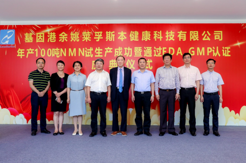 8月18日上午10点,位于余姚中意生态园的全球首座百吨级NMN工厂举行投产仪式。余姚市委常委韩柏顺、基因港总裁王骏出席仪式并发言。