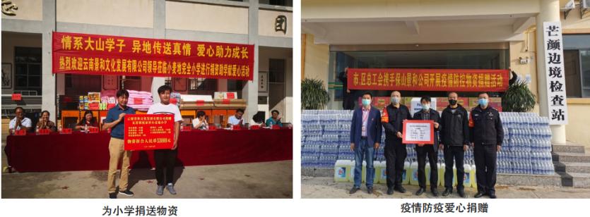 “爱心不能等待”,今年疫情席卷云南正值春节前后,在发放给员工奖金后,保山锦和建筑劳务有限公司的账面余额已经所剩无几。杜朝云觉得在疫情面前他责无旁贷,于是和朋友借款,购买了15万元的防疫物资捐赠给街道、社区、各防疫卡点等。他解释道:“我要尽自己所能回报社会,坚持走在公益事业的道路上。”纵使自己企业还面临诸多问题和挑战,也要尽自己所能回馈社会,杜朝云的爱心太实诚,穿透了所有善良的灵魂。