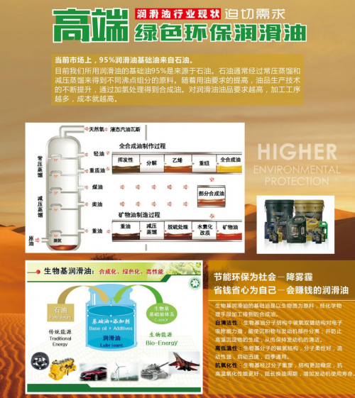 善尾气排放等功能。生物基润滑油的基础油来源可再生,可降解,代表着节能环保的未来趋势。