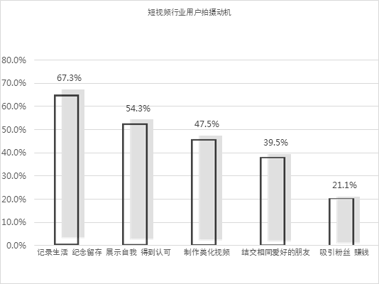 在当前快节奏的社会环境里人们会对碎片时间加以利用,短视频的信息不同于其他类型的视频,短视频的制作相对没有那么复杂,使用移动设备就可以进行操作,借助滤镜、美颜等工具就可以制作出作品,学习成本低。而且短视频的传播速度也很快,平台的门槛低,渠道也很多,一个视频可以裂变式地上传,影响的范围也很广,还可以转发或评论别人的视频交互性也比较强。而大家选择拍摄短视频的动机也是多种多样的。林克舆情数据也根据全网调研数据总结了几个用户拍摄短视频的动机。