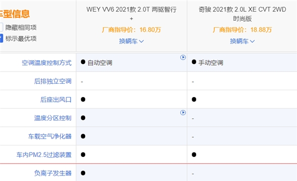 为此我特意给大家准备了同为中期改款的两款车型,分别是WEY VV6(2021款2.0T两驱智行+/16.8万)和日产奇骏(2021款2.0L XE CVT 2WD时尚版/18.88万)。到底哪辆能够肩负起出行安全的重任,我们对比一番便知。