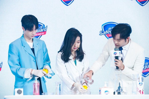 为了让大家更直观了解舒肤佳产品强大的功效,宝洁科学家也亲临活动现场,携手王一博为大家进行“清洁排浊”、“绵密泡沫”两大趣味实验,实力见证舒肤佳红石榴排浊沐浴露啫喱强大的清洁排浊、绵密起泡功效。