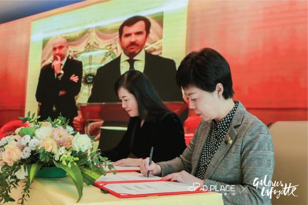 区政府副区长刘盛薇、市商务局局长刘俐莎与法国老佛爷百货公司首席执行官Nicolas Houze视频签约