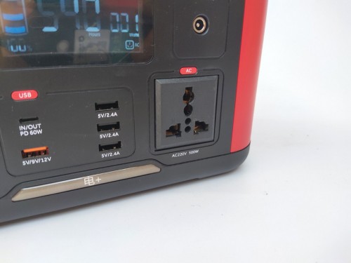 AC插座:符合新国标触电保护门设计,防止不慎将金属物件插入发生触电危险,安全性也比同类产品做的更好。能够输出220V 50Hz的交流电,并且输出有效持续500W的功率,使用起来安全贴心。