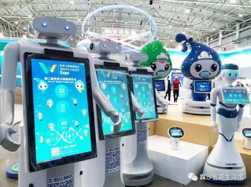 本次健博会健康共同体及每个场馆门口的近百台智能机器人均由湖北人工智能明星企业——武汉霖汐科技有限公司(简称:霖汐科技)提供。应勇书记、王晓东省长等领导及与会嘉宾共同在健康共同体处驻足,并由讲解人员详细介绍了本次大会的机器人科技元素,展示了湖北省在科技抗疫过程中的部分成果。