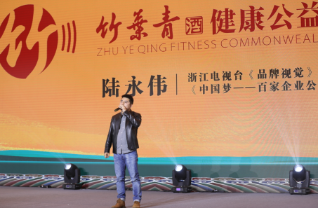 浙江电视台《品牌视觉》栏目主编、《中国梦——百家企业公益行》大型公益纪录片制片人陆永伟为与会人员介绍与竹叶青酒联合创立健康公益联盟的初衷和2021年公益计划。