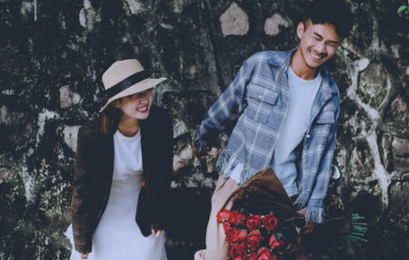 人物表情:一般说来,拍结婚照表情不宜笑得太夸大,大笑一是容易把脸拉宽显胖,二是轻易把眼睛笑小,三是容易笑出皱纹来。自然的微笑表情比较好。正常情况,忌表情很死板,笑得很假;忌表情太冷漠,不笑时,可以是安静的表情。太冷淡的表情切实不合适在结婚照中。能捉住霎时自然的微笑的作品,是表情的上等作品。摄影作品讲求形神兼备,所谓神,就是指韵味,其中心就是表情要活泼自然好表情必定是瞬间抓拍出来的,让你一直笑,半天不拍的,确定不会有好表情。