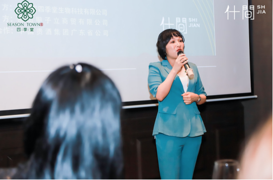 “520致爱她·四季堂女性力量商业见面会”首先由喻雄英女士(佛山汨罗商会名誉会长、广东金融城商会名誉副会长、佛山市顾全行业协会副会长、广东省投资发展促进会理事、千灯资本集团创始人总裁)开场致辞,除了介绍四季堂“新汉方,轻养肤”的产品理念,还道出了品牌方四季堂选择在520当天举办商业活动的深层寓意:“当代女性不仅爱别人,也要好好爱自己,为自己的事业拼搏出一片天空”。
