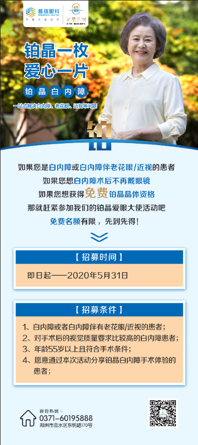 郑州普瑞眼科铂晶爱眼大使也在火热招募中