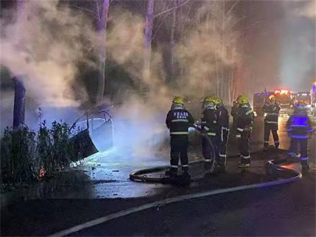 王豪东等救出司机后消防队灭火救援