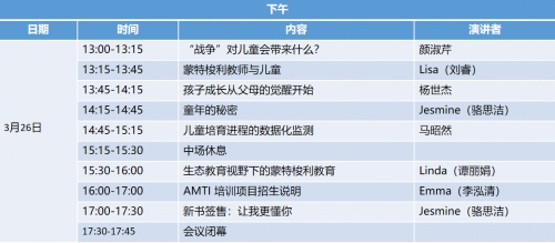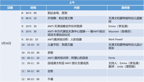 3月26日澳洲蒙特梭利培训学院AMTI《呵护童心 教学相长》学术交流会会议流程: