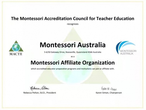 MA于2021年获The Montessori Accreditation Council for Teacher Education(蒙特梭利教师教育认证委员会,简称MACTE)认证,成为MACTE全球十大附属机构之一。