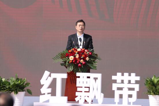 “红飘带”项目作为长征国家文化公园重点项目,是贵州重点建设区的标志性、引领性工程,也是贵州推进长征国家文化公园建设的重要抓手和破题之举。该项目在建筑理念上,以“地球的红飘带”为建筑核心语言,建筑形体设计以“中央红军长征路线图”作为主题,打造了南北方向蜿蜒的红飘带曲面幕墙的曲率跌宕起伏,形成了连续转折的动态轮廓,体现了“红旗飘飘”的灵动之美。“红飘带”外立面色彩系统采用跳色设计,创意设计融合贵州赤水丹霞地貌,实现了建筑与自然景观的有机结合,展现出不同的视觉及空间效果。