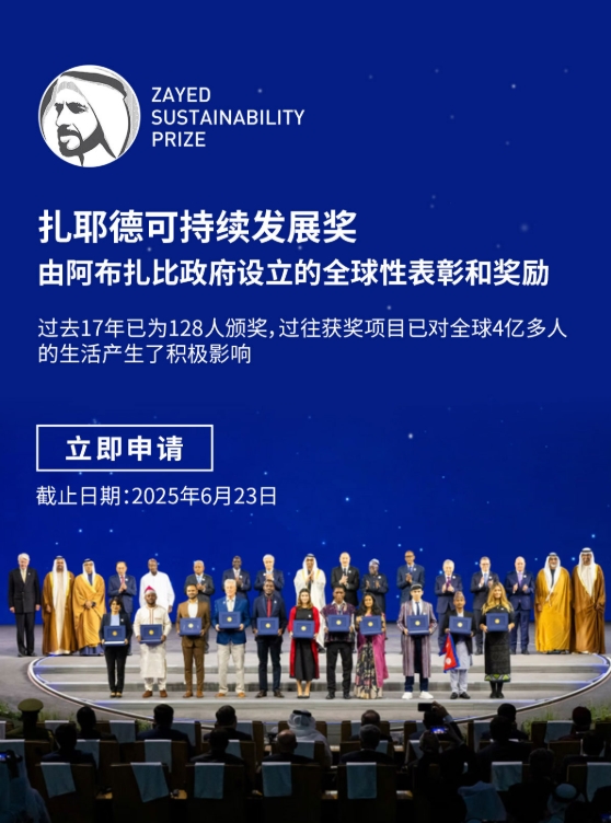 扎耶德可持续发展奖全球征集变革性解决方案