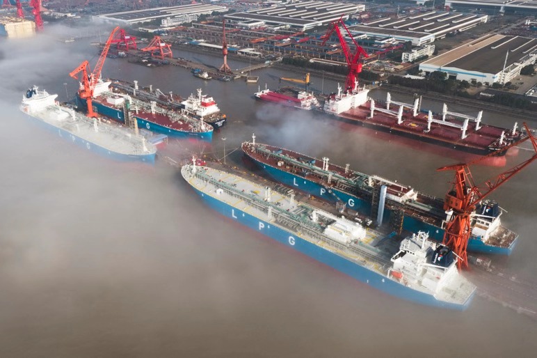4艘超大型液化石油气船在江南造船(集团)有限责任公司码头