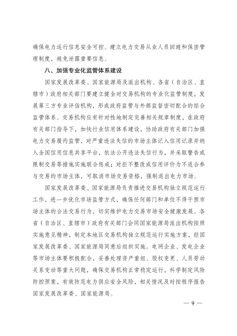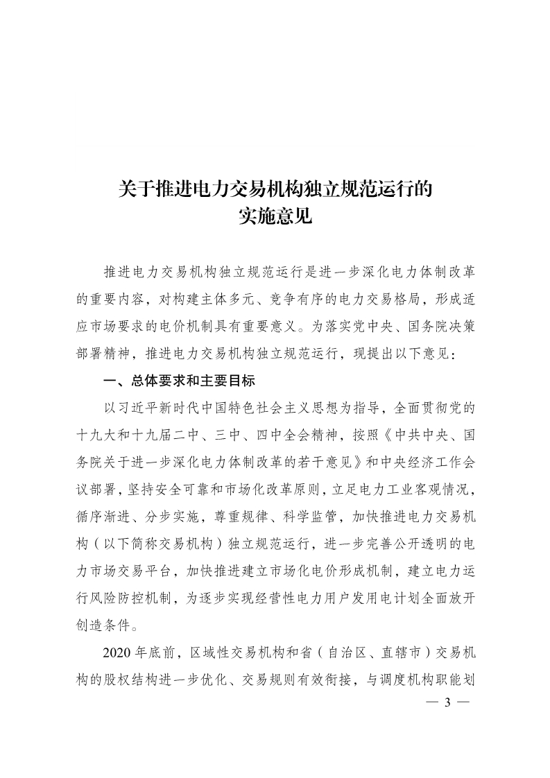 国家发展改革委 国家能源局印发《关于推进电力交易机构独立规范运行的实施意见》的通知