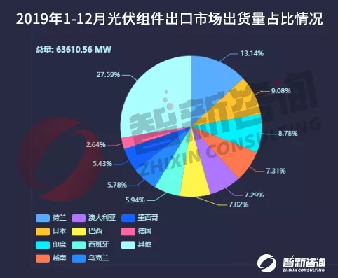 2019年光伏组件出口:总出货量63.61GW 晶科、晶澳、阿特斯出口额排名前三