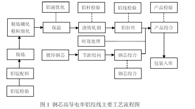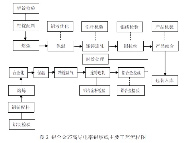 (2)铝合金芯高导电率铝绞线和中强度铝合金绞线:通过铝基体的合金化的配方组合,及加工工艺及热处理的控制,使其导电率、强度、延伸率上得到明显提高。