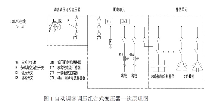 自动调容调压组合式变压器的原理及内部结构示意见图1、图2。
