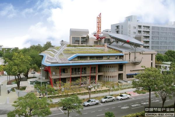 台湾成功大学力行校区入口处,紧邻马路伫立着一幢造型奇特的建筑物,头顶阶梯状花园、趴着“大瓢虫”的太阳能面板和小型风力发电机,在一片中规中矩的建筑楼群中尤为显眼。这座建筑面积3000多平方米的大楼,比同等规模办公楼节能70%,被“绿色建筑教父”尤德尔森(Jerry Yudelson)称为“世界上最绿的绿色建筑”,已成为中国台南地区的一处地标。
