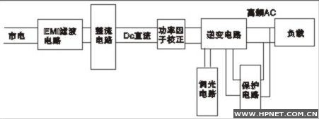 高频发生器的作用是产生供感应无极荧光灯工作的高频功率能量,这是LVD感应无极荧光灯的关键技术之一。其工作原理的结构框图如图所示: